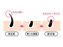 毛は根元が1番太く、先端に行く程細くなっています。これを剃ることで、この後毛が伸びたときに、根元の1番太い毛が全面に出てきて目立ってみえることがあるといわれています。
